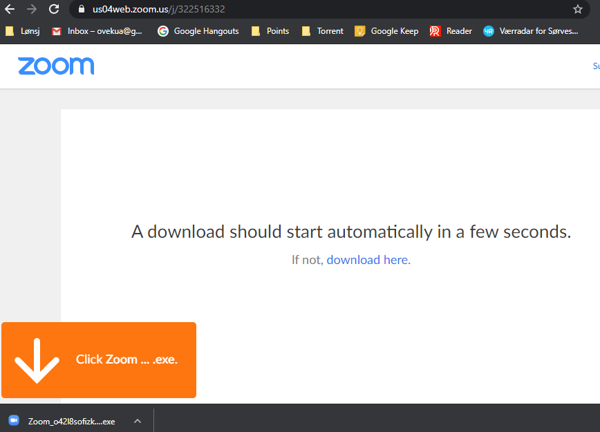 2: Hvis dette er første gang du bruker Zoom, må du laste ned og installere et lite program.